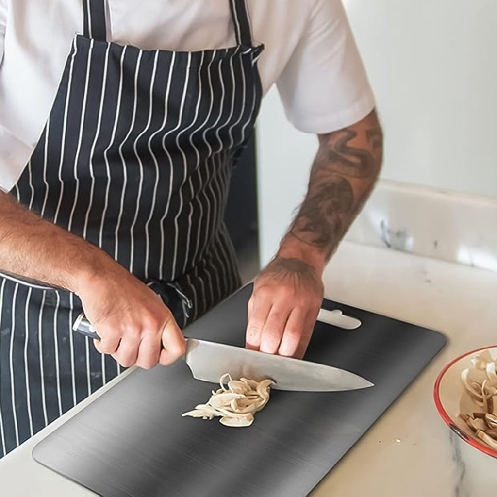 • 【Explanation】:After Using, the Surface will Leave Some Slight Scratches, This is Common for All Stainless Steel Chopping Boards.